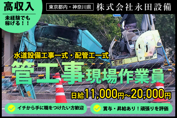 | 職種 | 現場作業員(水道設備工事一式・配管工一式) |